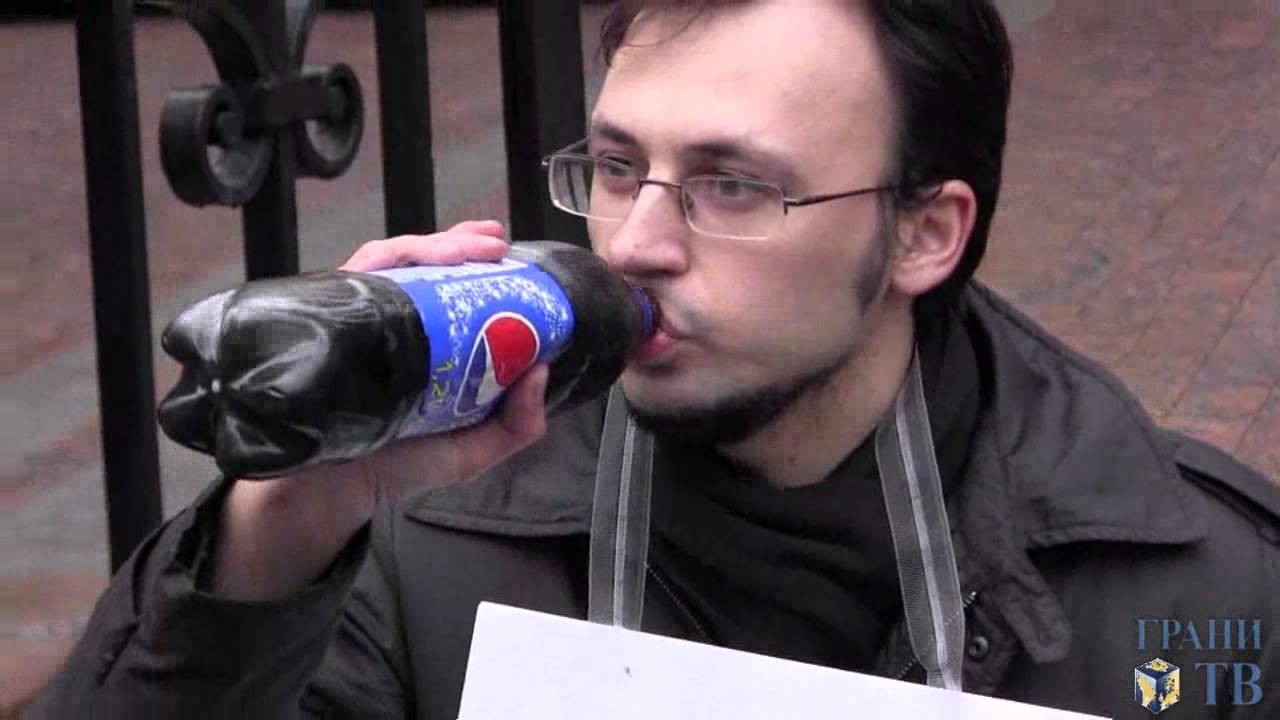 Возле Центробанка РФ активист провел одиночный пикет, поедая рубли и запивая их Pepsi. Видео
