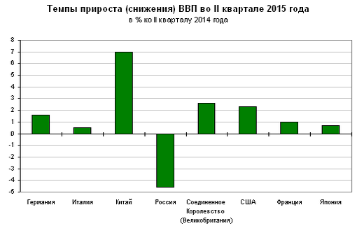 Промышленное производство в РФ в первом полугодии 2015 г. уменьшилось на 2,7% по сравнению с первым полугодием 2014 г. В то же время показатель Германии вырос на 0,8%, США – на 2,6%, Индии – на 3,3%.
