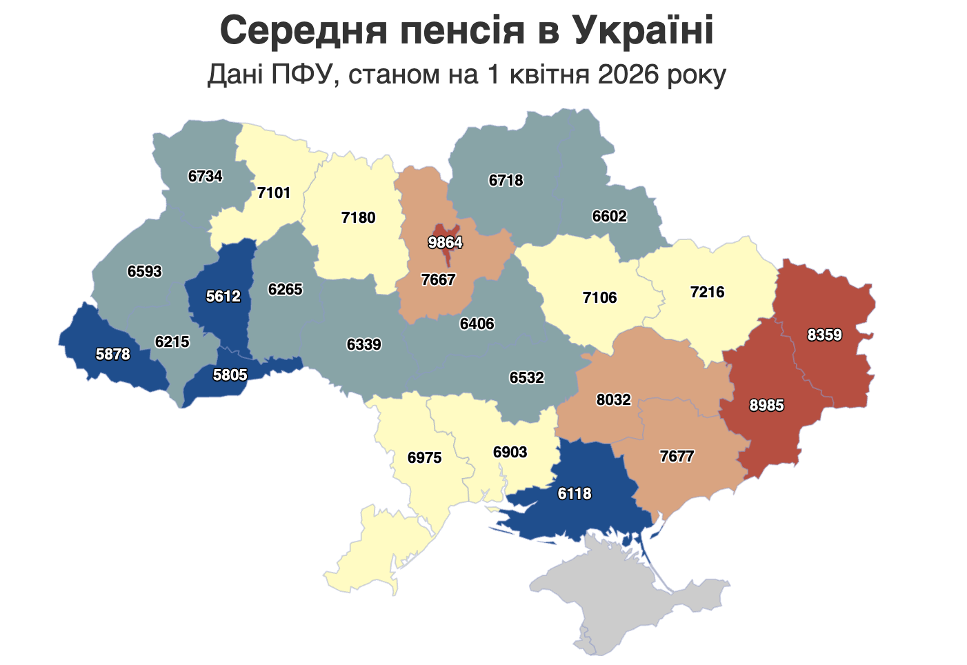 Самая высокая средняя пенсия традиционно – в столице и составляет почти 10 тыс. грн, самая низкая – в Тернопольской области (5,8 тыс. грн).