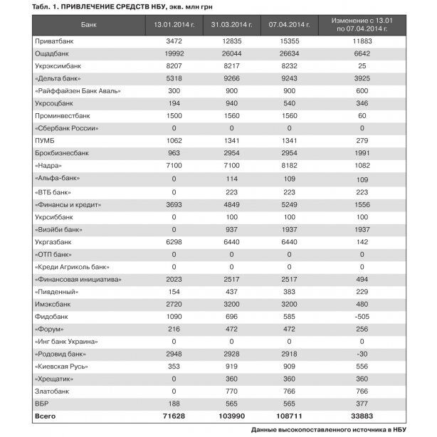 Всего в этом году НБУ рефинансировал украинские банки на сумму 36,2 млрд грн. Общая сумма долгов украинских банков составила 109 млрд грн, сообщает ZN.UA.