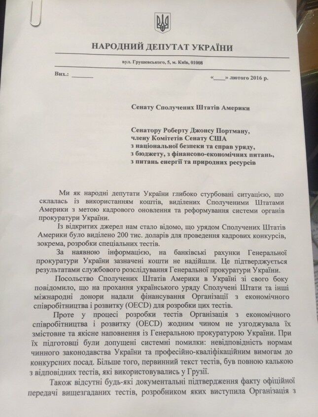 В пресс-службе партии добавили, что около 50 народных депутатов из разных фракций подписали письмо-обращение к Сенату США и сенатору Роберту Джонсу Портману, в котором просят Соединенные Штаты помочь выяснить местонахождение этих денег.