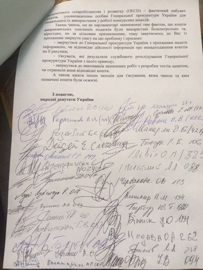 В пресс-службе партии Блок Петра Порошенко отметили, что также отсутствуют документы, которые бы подтверждали передачу специальных тестов для реформирования Генеральной прокуратуры Украины.