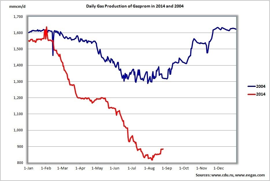 По словам Корчемикина, это связано с падением объемов добычи газа в России.
