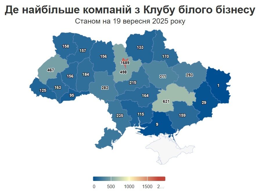 По количеству "белых" бизнесов лидируют Киев (1689 компаний), Днепропетровская (631), Киевская (498), Львовская (467) и Полтавская области (311).