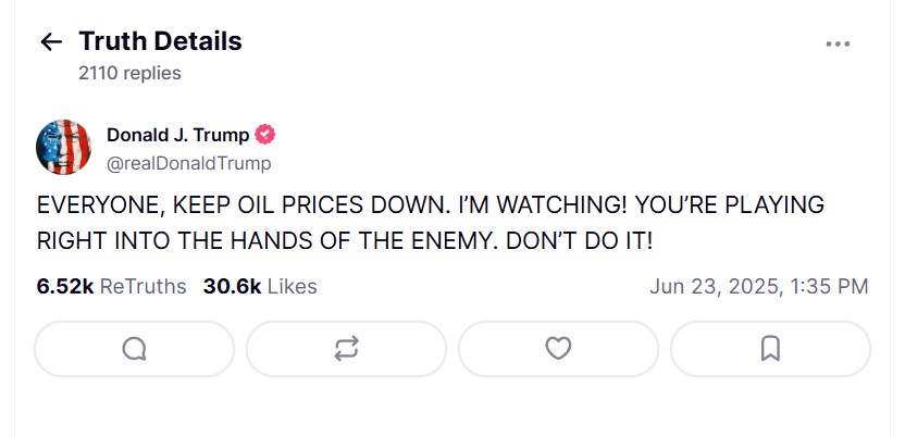 "Все, держите цены на нефть низкими. Я вижу! Вы играете на руку врагу. Не делайте этого!" – заявил Трамп.