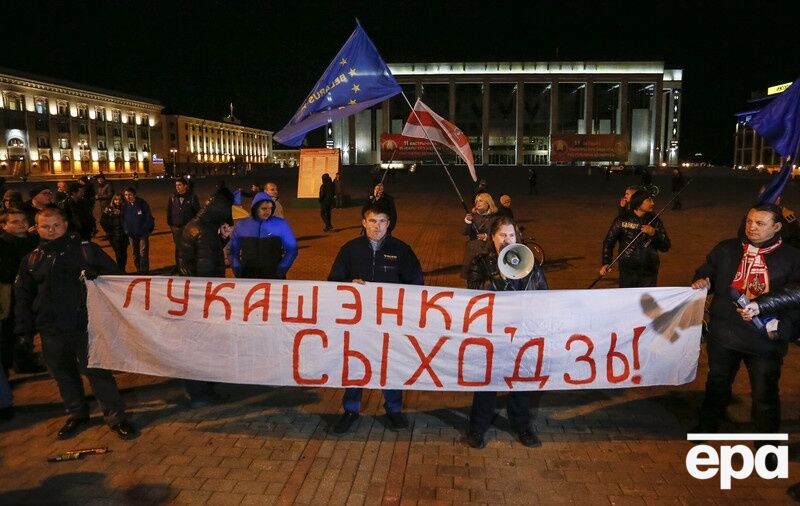 После закрытия избирательных участков в Минске состоялась немногочисленная акция оппозиции. Активисты требовали не признавать результатов выборов.