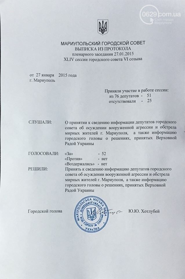 27 января Мариупольский городской совет проголосовал за признание России страной-агрессором.
