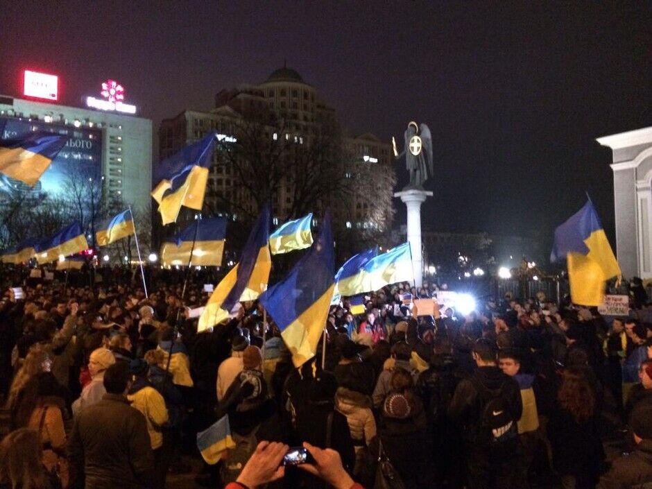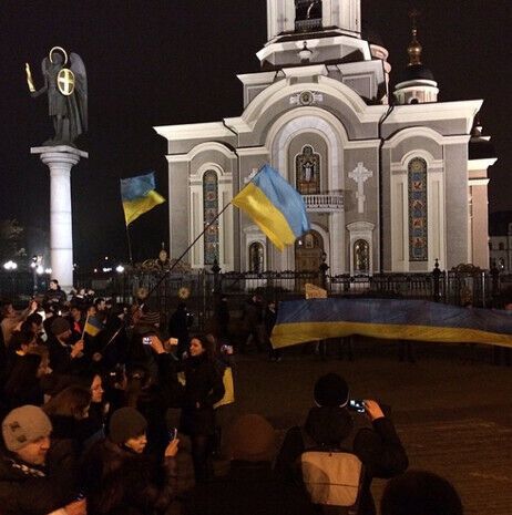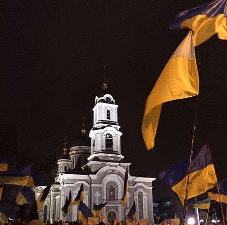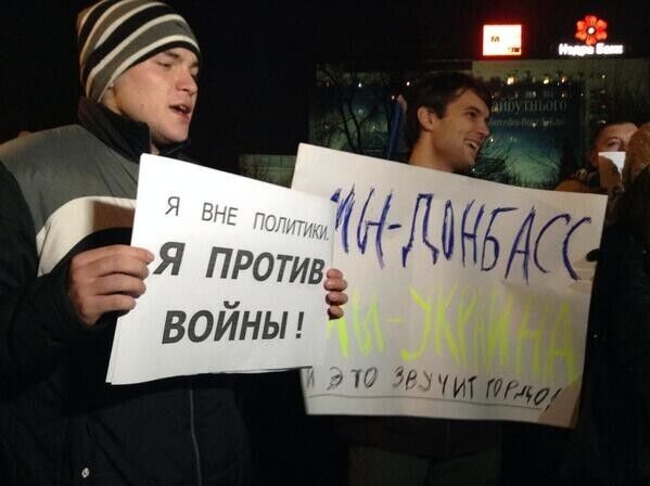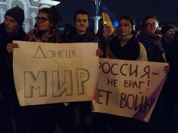 Вечером в Донецке у памятника Архангелу Михаилу начался митинг за единую, независимую и мирную Украину. Около 600 человек собрались вместе и спели гимн. После скандировали: "Украина – Донецк". Митингующие потребовали от нового главы ОГА Сергея Таруты взять власть в свои руки и провести люстрацию.