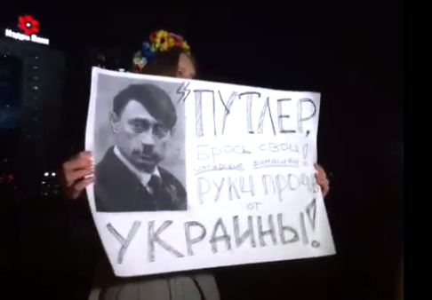 "Путин, прочь", "Вова, домой", "Россияне братья", "Нам защита не нужна" скандируют люди и требуют вывести из Украины российские войска, пишут "Новости Донбасса".