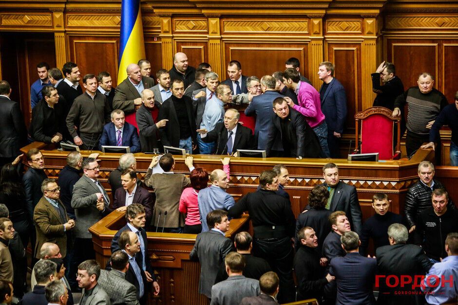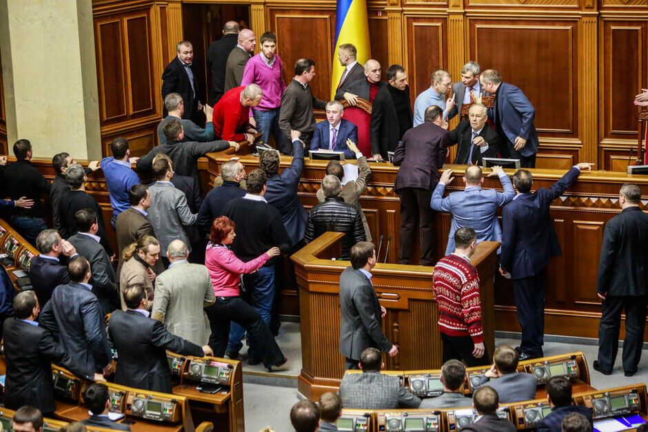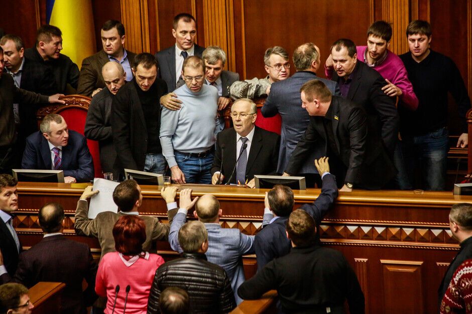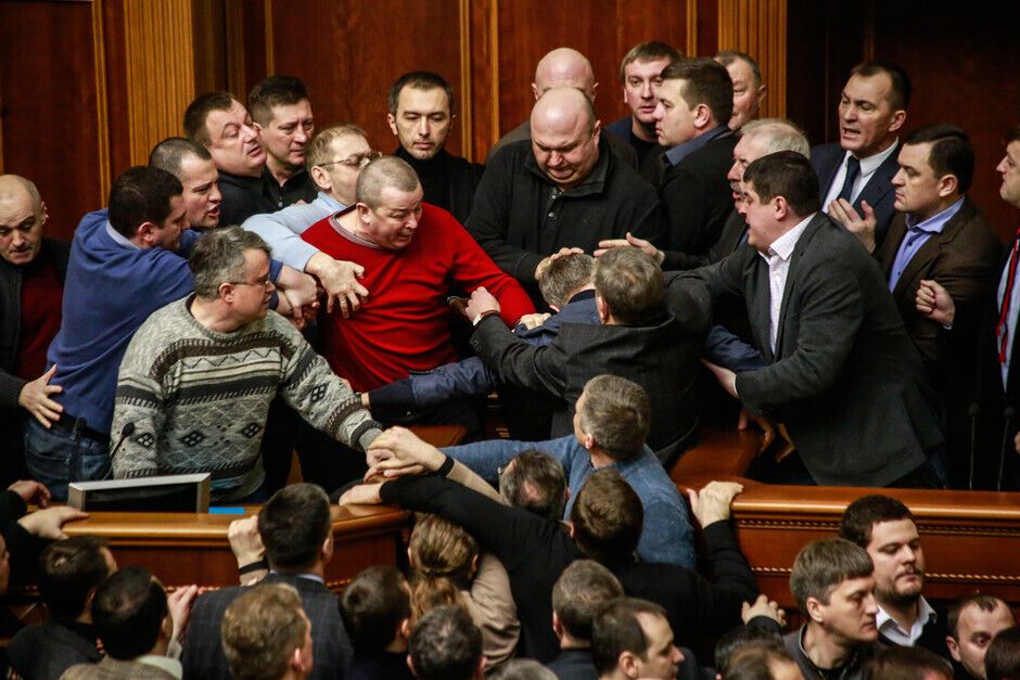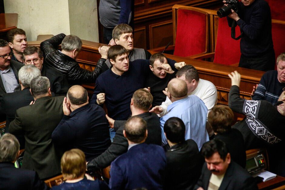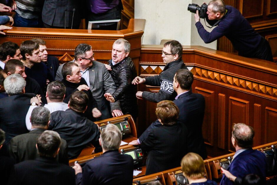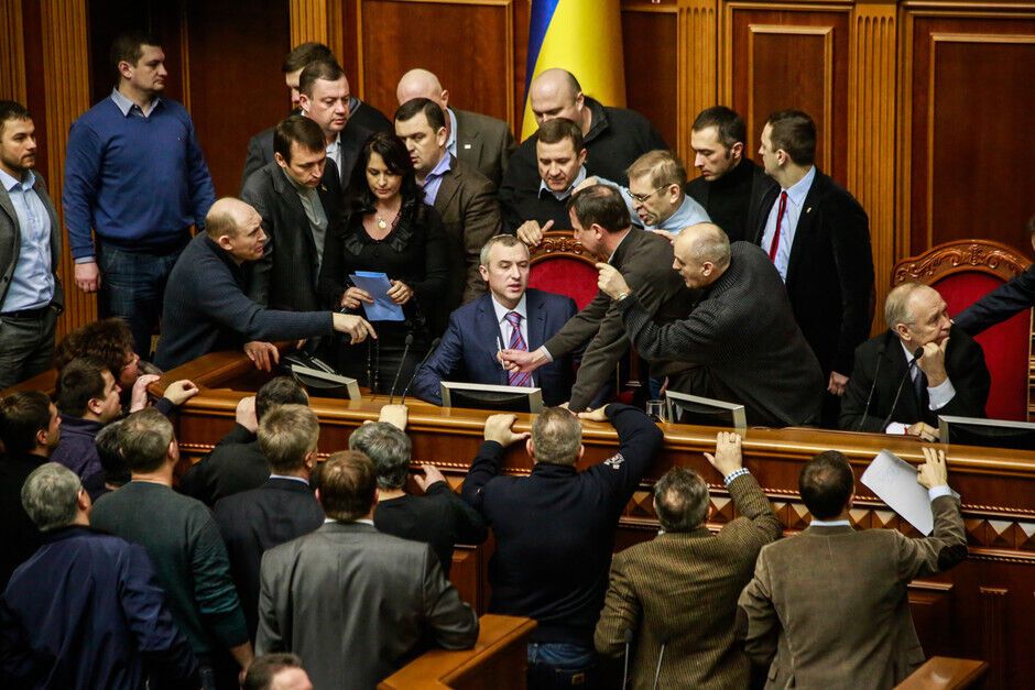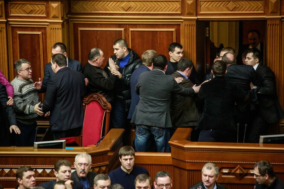 21 февраля в Верховной Раде произошла потасовка между оппозиционерами и провластным большинством. Столкновение произошло после того, как спикер Владимир Рыбак без согласования с депутатами объявил о перерыве в работе парламента до 16.00.