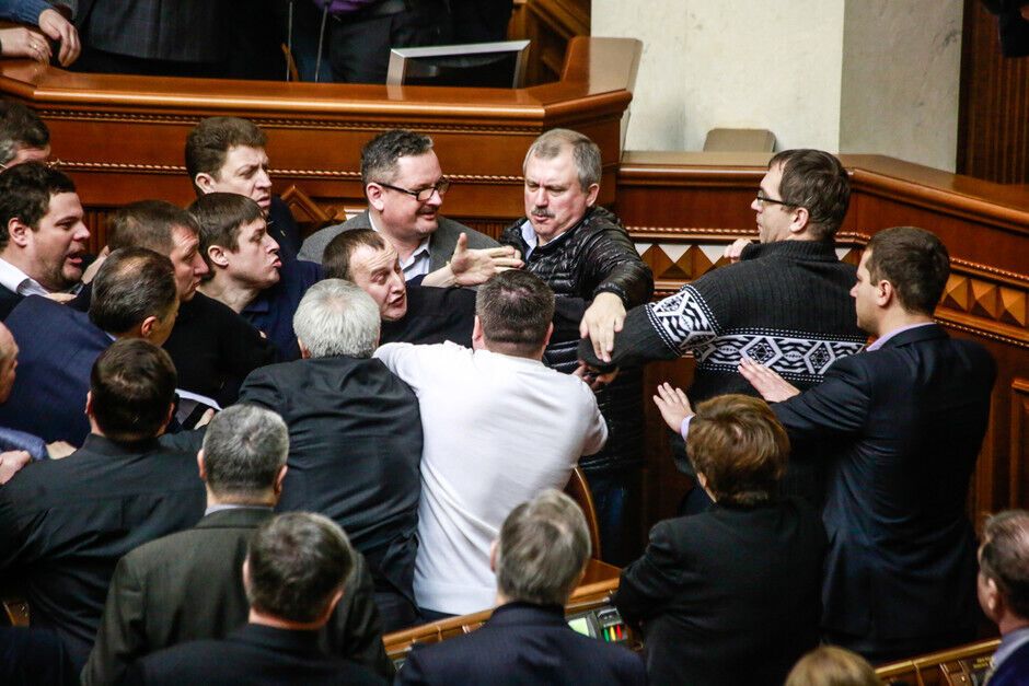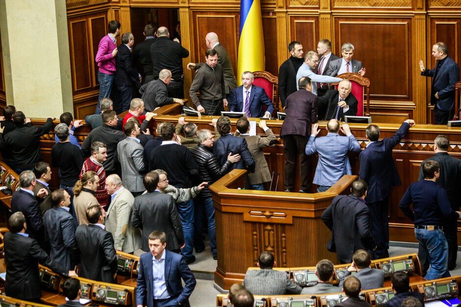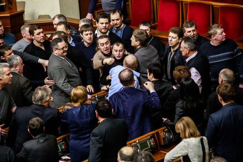 Депутаты начали активно протестовать против этого, у президиума ВР произошла драка.