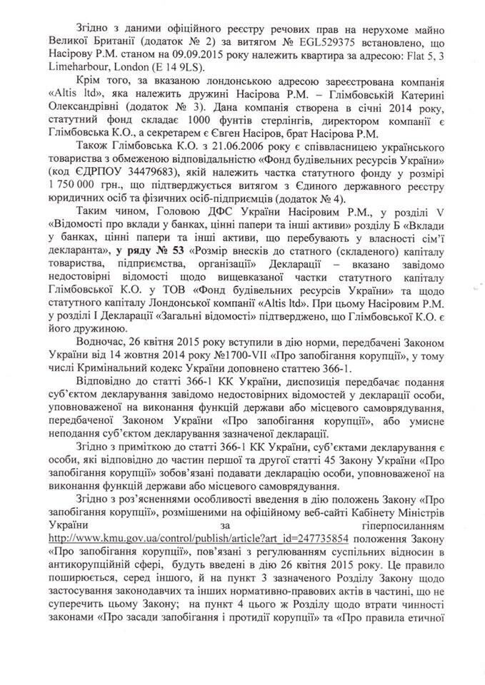 По мнению Соболева, в действиях Насирова есть признаки уголовного правонарушения по ст. 366-1 Уголовного кодекса Украины.