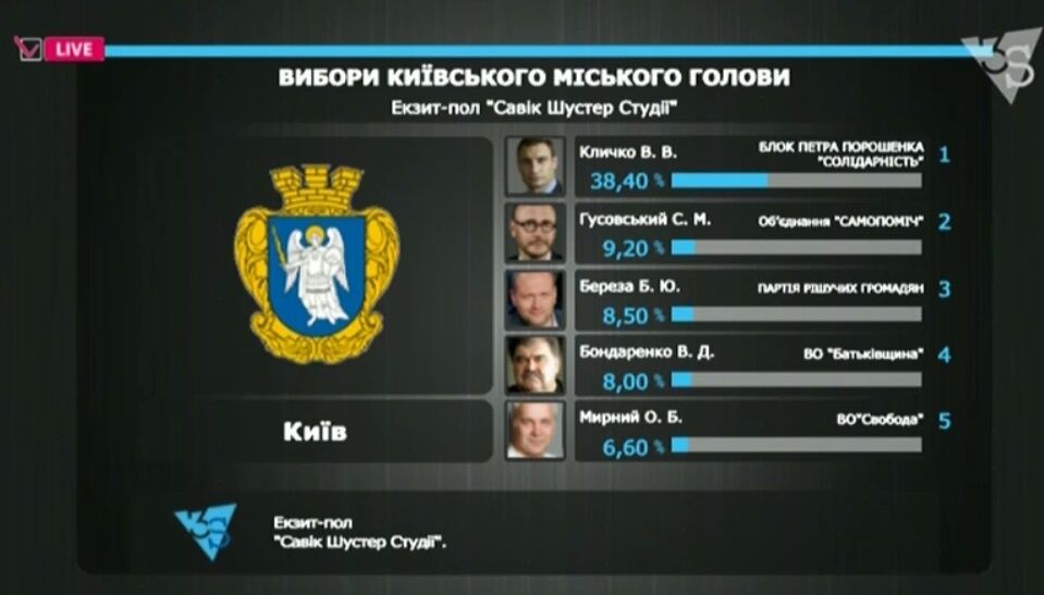 Экзит-полл студии Шустера: В Киеве побеждает Кличко, будет второй тур