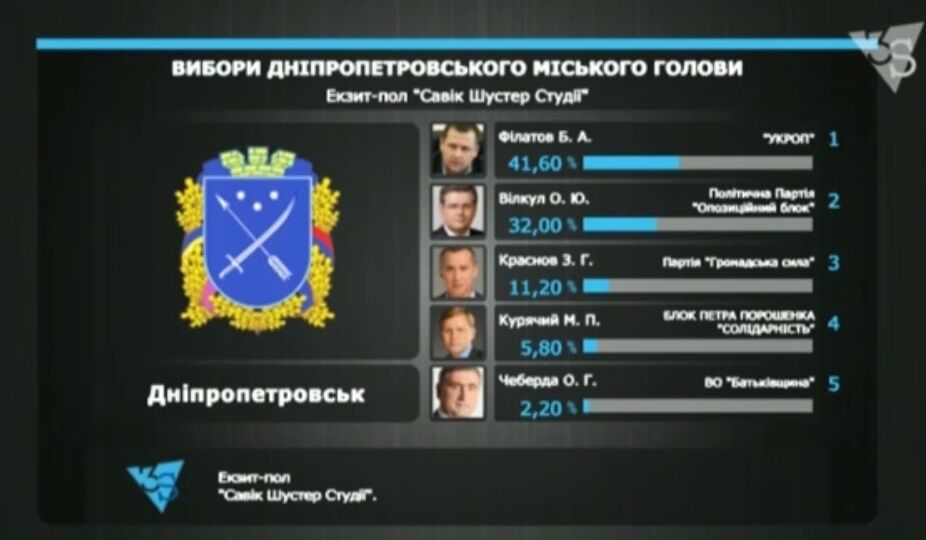 Экзит-полл студии Шустера: На выборах мэра Днепропетровска лидирует Филатов, Вилкул второй