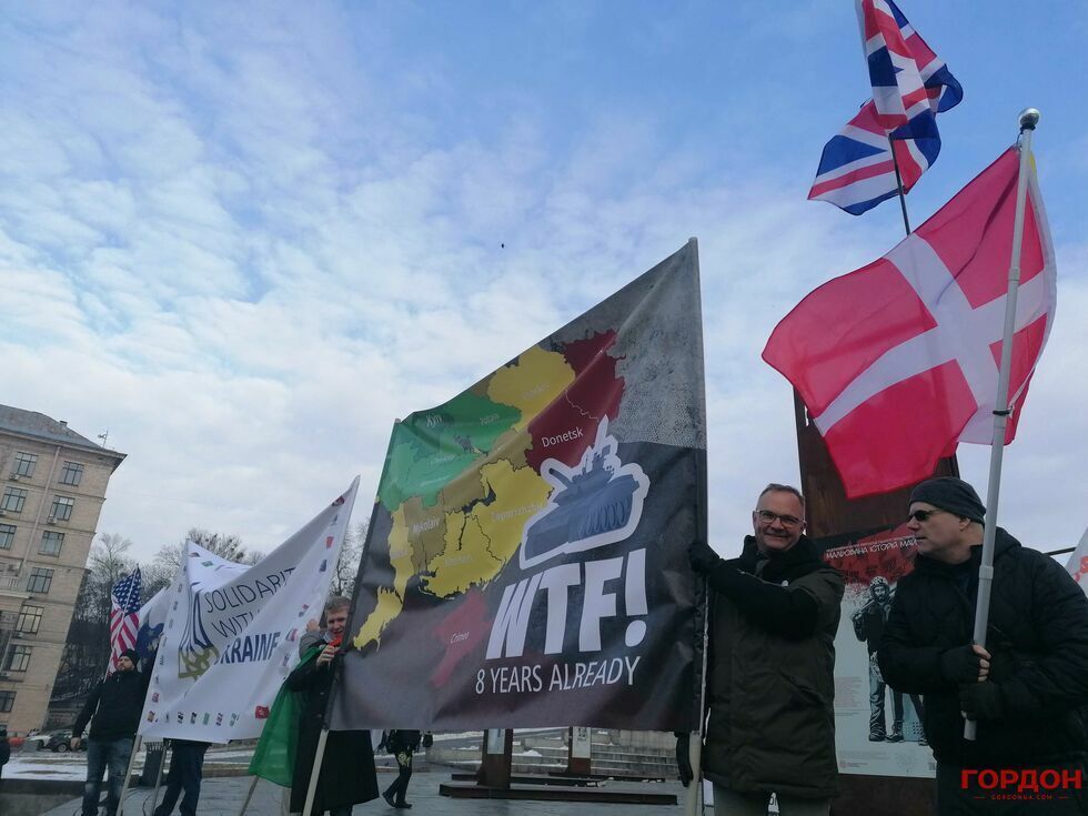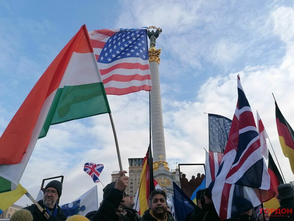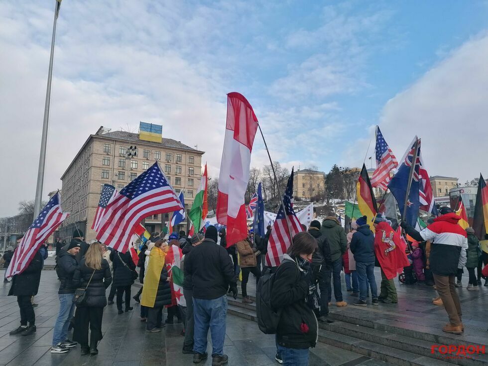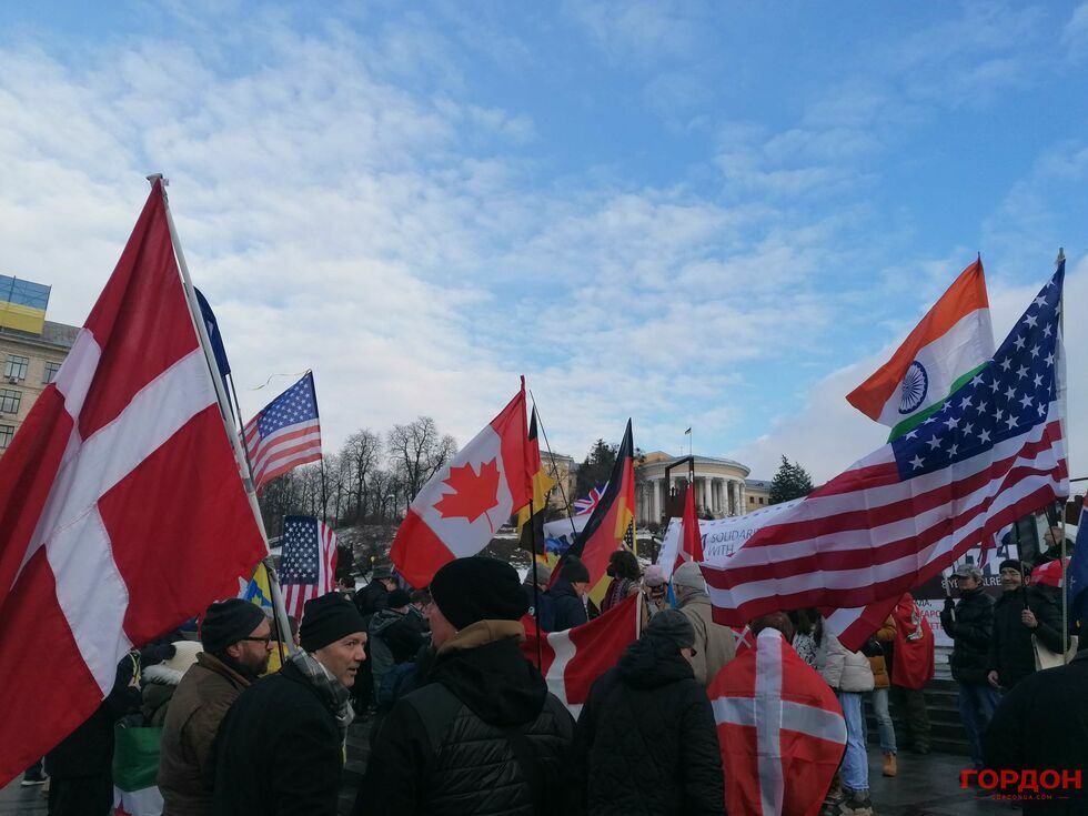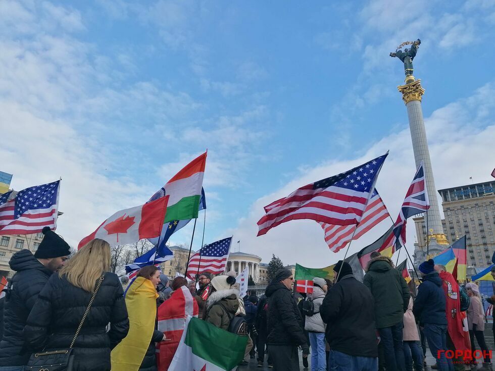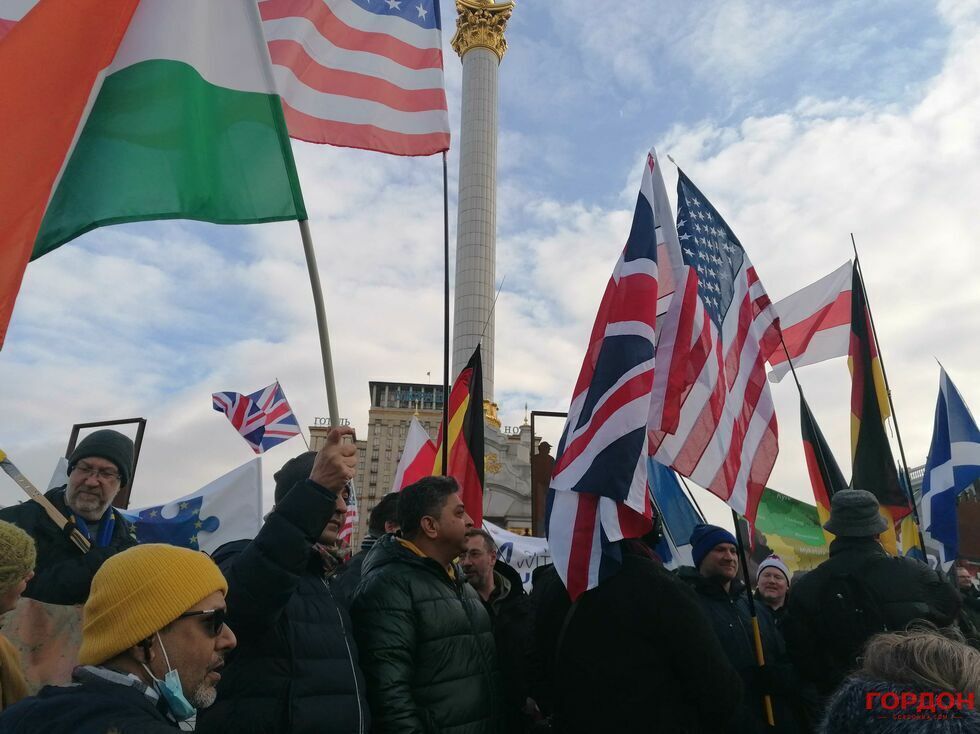 6 февраля живущие в Киеве иностранцы вышли на акцию в поддержку Украины на фоне угрозы нового вторжения России. Колонна участников акции прошла от парка имени Шевченко до Майдана Незалежности, передает корреспондент "ГОРДОН".