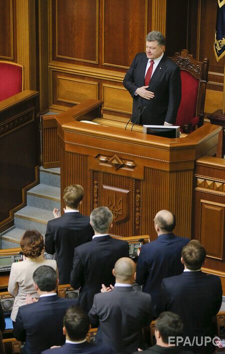 В четверг, 27 ноября, состоялось открытие Верховной Рады восьмого созыва, которая была избрана на внеочередных парламентских выборах 26 октября. На открытии первой сессии присутствовали президент Украины Петр Порошенко, три экс-президента Леонид Кравчук, Леонид Кучма, Виктор Ющенко, члены правительства, руководители Службы безопасности Украины, Генеральной прокуратуры, иностранные дипломаты. Новоизбранные народные депутаты в начале заседания спели национальный гимн, а также впервые в истории Украины хором принесли присягу.