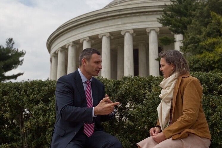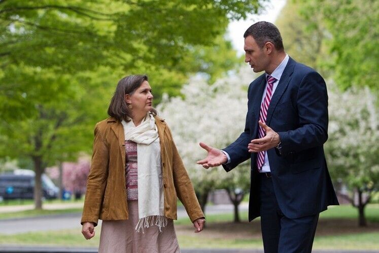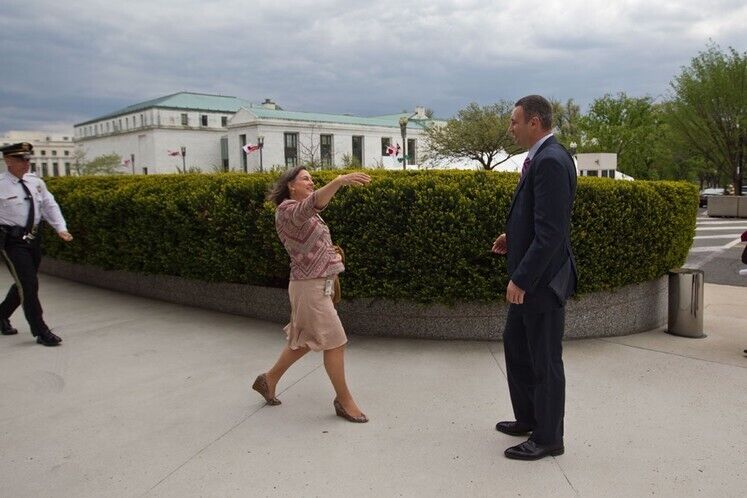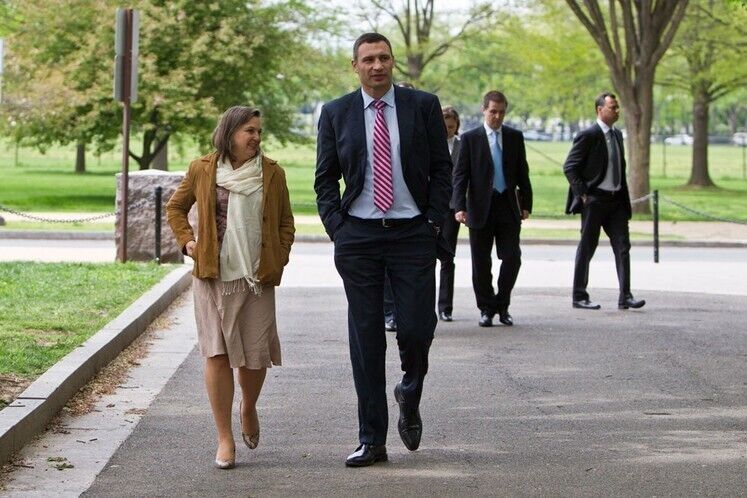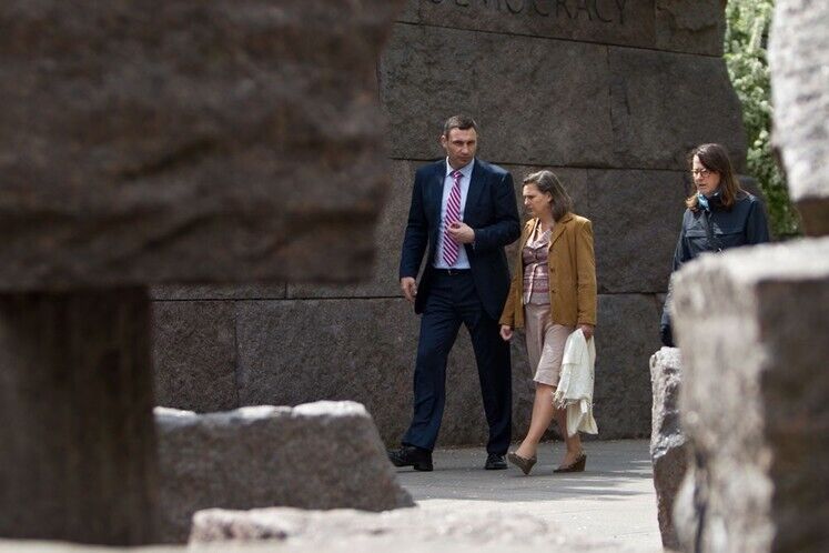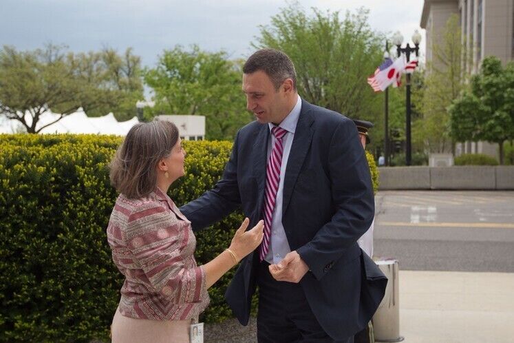 Мэр Киева Виталий Кличко и помощник Государственного секретаря США Виктория Нуланд провели встречу в Вашингтоне 27 апреля. Политики обсудили перспективы инвестирования в Украину и Киев и, в частности, необходимые для этого условия – борьбу с коррупцией и реформу прокуратуры, говорится в сообщении на сайте партии УДАР Виталия Кличко.