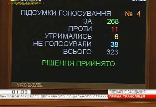 01.33 Рада 268-ю голосами проголосовала за закон о едином соцвзносе.Согласно проголосованному законопроекту, единый социальный взнос уменьшен с 41% до 16,4%.