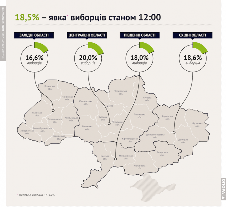"Опора": По состоянию на 12.00 явка на местных выборах в Украине составила 18,5%
