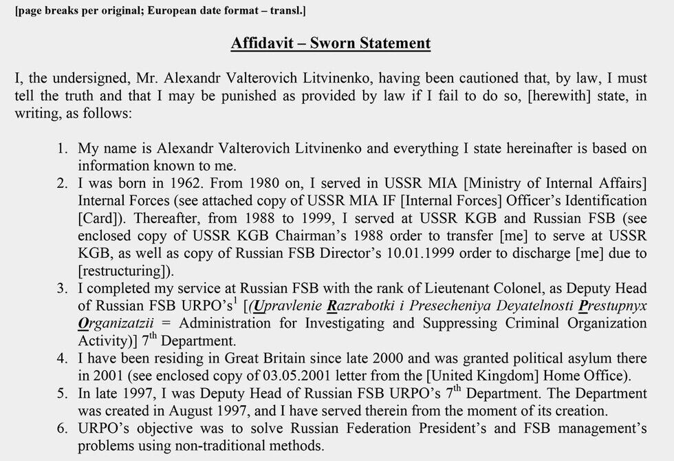 21 января 2016 года Высокий суд Лондона объявил вердикт в деле об убийстве бывшего сотрудника КГБ СССР и ФСБ РФ Александра Литвиненко, отравленного радиоактивным полонием в 2006 году. Суд, в частности, объявил виновными в убийстве бывших сотрудников российских спецслужб, депутата Госдумы РФ Андрея Лугового и предпринимателя Дмитрия Ковтуна.