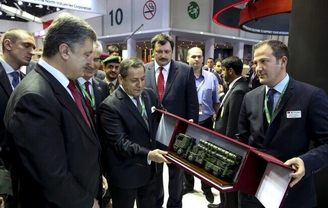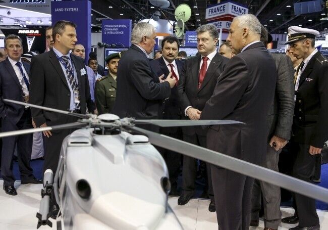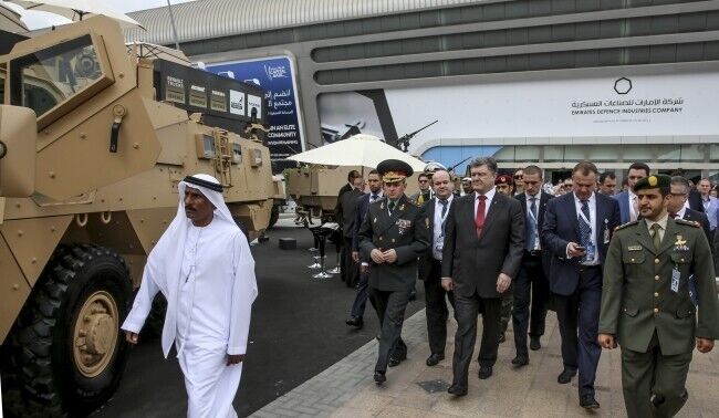 Во время визита в Объединенные Арабские Эмираты (ОАЭ) президент Украины Петр Порошенко и начальник Генерального штаба Вооруженных сил Украины Виктор Муженко посетили международную выставку вооружений и военной техники IDEX-2015, которая проходит в Абу-Даби. Как отметил Порошенко, в мире снижается уровень безопасности, поэтому популярность подобных выставок растет. Президент также сообщил, что достигнутые в ОАЭ договоренности усилят возможности украинской армии. Порошенко не уточнил, о чем именно идет речь, но, по информации советника министра внутренних дел, народного депутата от "Народного блока" Антона Геращенко, Украина договорилась с ОАЭ о поставках оружия.