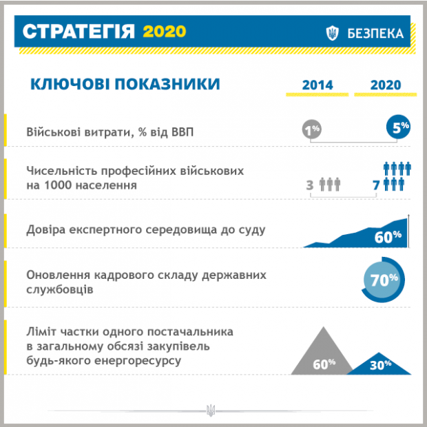 Как сообщается, "Стратегия-2020" включает около 60 реформ и специальных программ, реализация которых позволит Украине войти в топ-20 стран в рейтинге Всемирного банка по легкости ведения бизнеса, увеличить ВВП на душу населения до $16 тыс. против нынешних $8,5 тыс.
