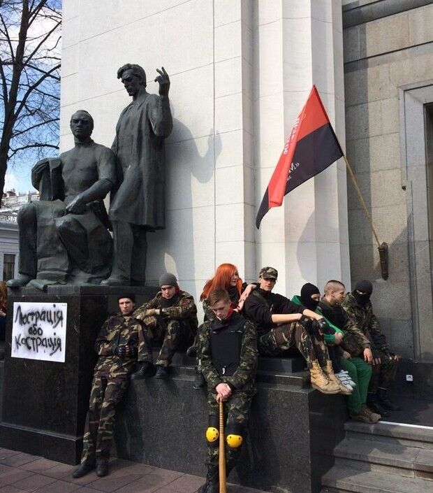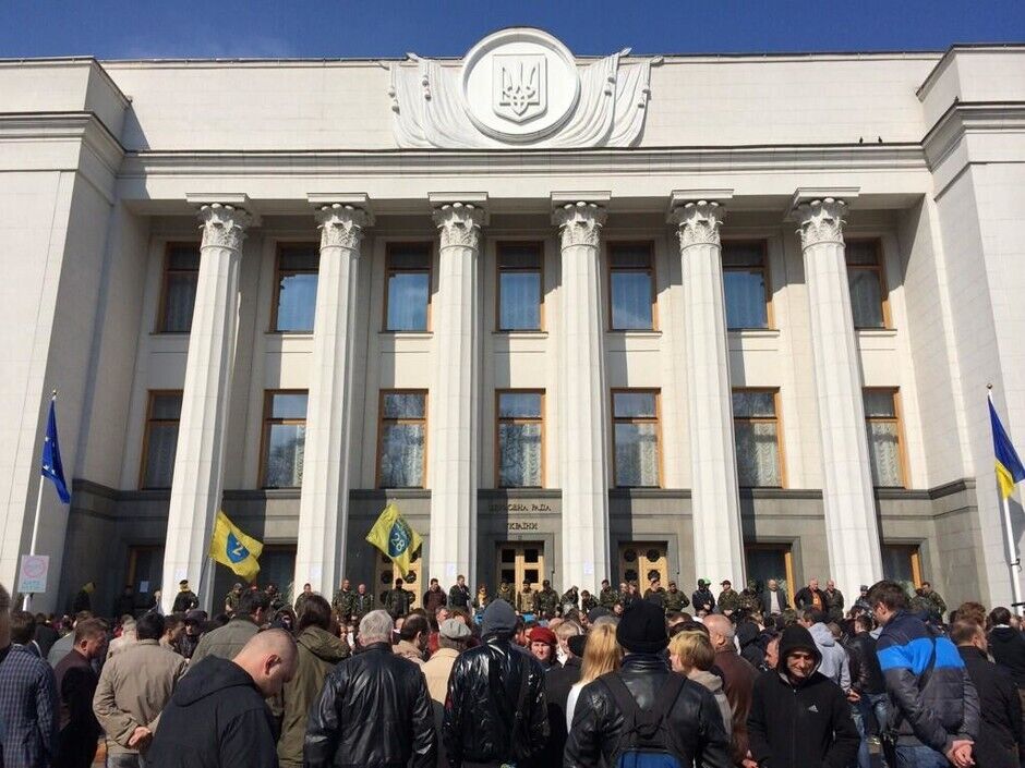 В четверг, 27 марта, "Правый сектор" пришел под Раду с шинами. Охрана парламента серьезно готовилась к штурму.