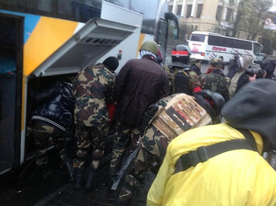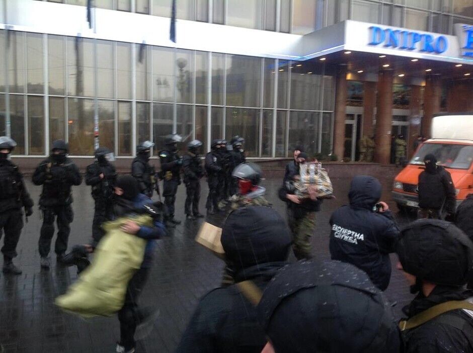 "Правый сектор" покинул отель "Днепр" без оружия и под присмотром милиции