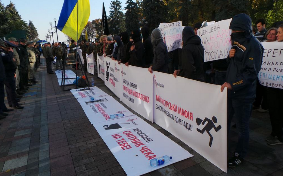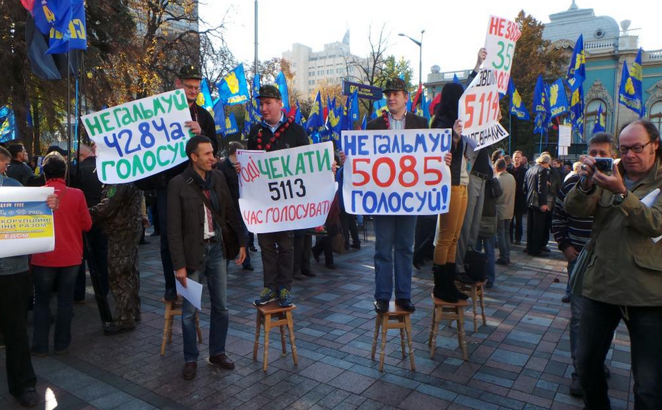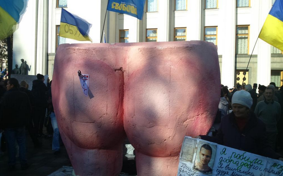 14 октября под стены Верховной Рады пришли активисты, которые требовали принятия пакета антикоррупционных законов. Одним из главных элементов перформанса стала большая "коррупционная задница".