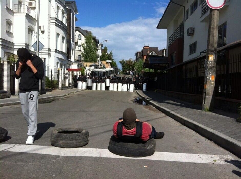 Ранее несколько сотен активистов провели шествие по улице Ивана Мазепы от станции метро "Арсенальная" до Киево-Печерской лавры. Они выкрикивали лозунги "Слава Україні! – Героям Слава!" и пели песню "Путин – х...ло".