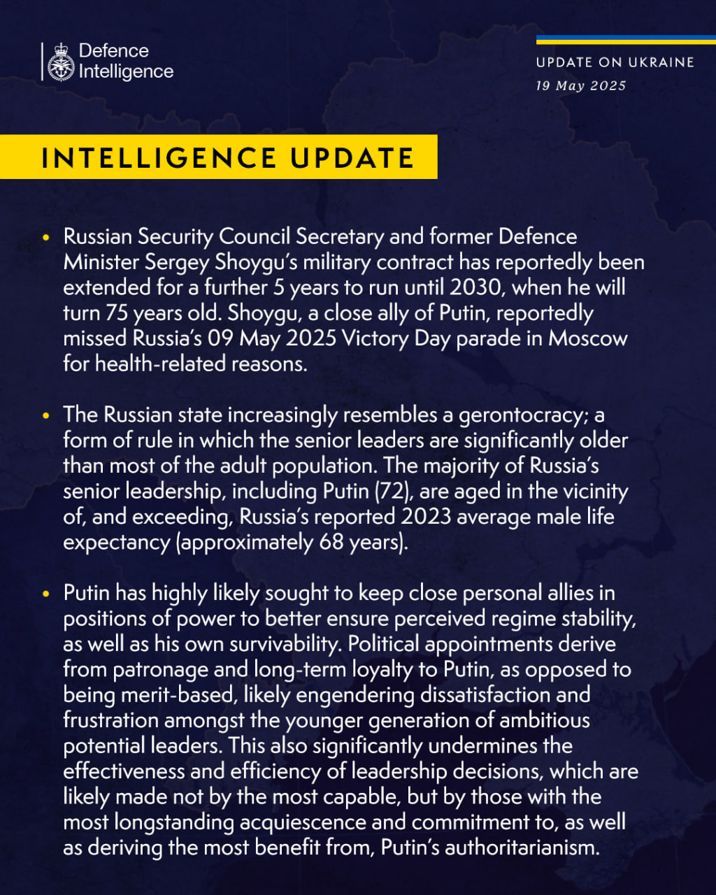 "Российское государство все больше похоже на геронтократию – форму правления, в которой старшие руководители значительно превышают по возрасту большинство взрослого населения. Путин, с большой вероятностью, стремится удерживать на руководящих должностях лично преданных союзников, чтобы обеспечить, как ему кажется, стабильность режима, а также собственное политическое выживание", – отмечает пресс-служба.