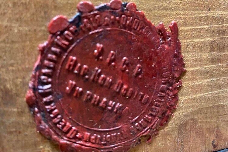 Судя по фотографиям, обнародованным боснийскими СМИ, на обороте иконы стоит печать с надписью "Нарком образования УССР".