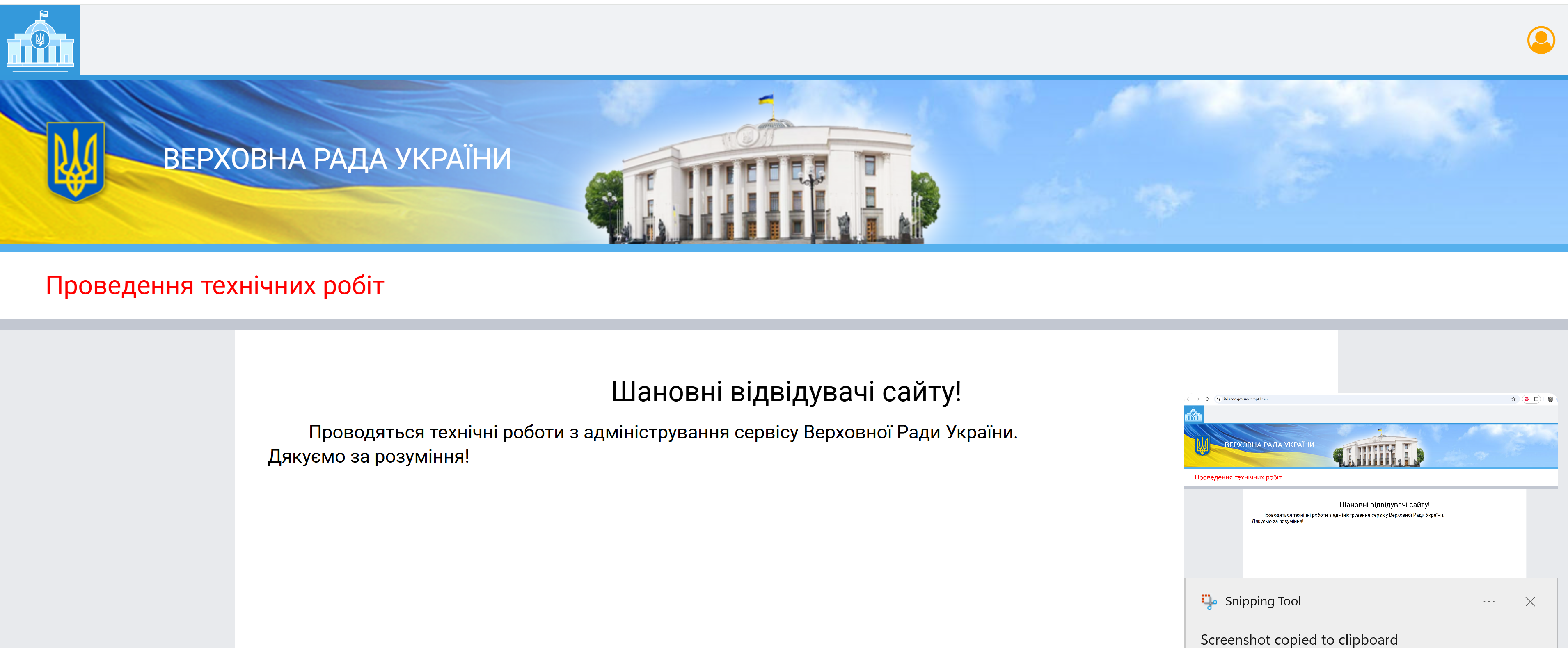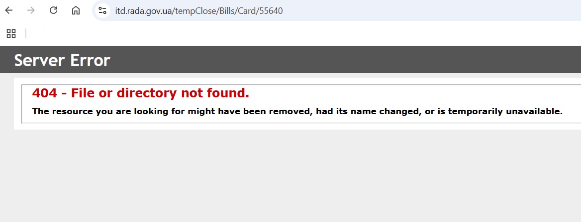 Позже в разделе документов на сайте Рады, где размещены все законопроекты, появилось сообщение о "проведении технических работ по администрированию сервиса Верховной Рады". Главная страница сайта и раздел новостей работают.