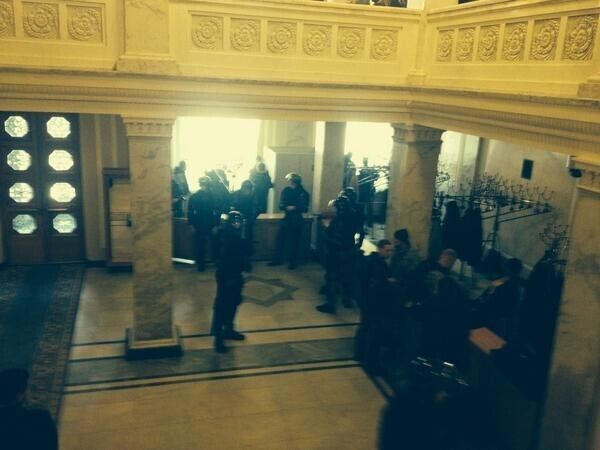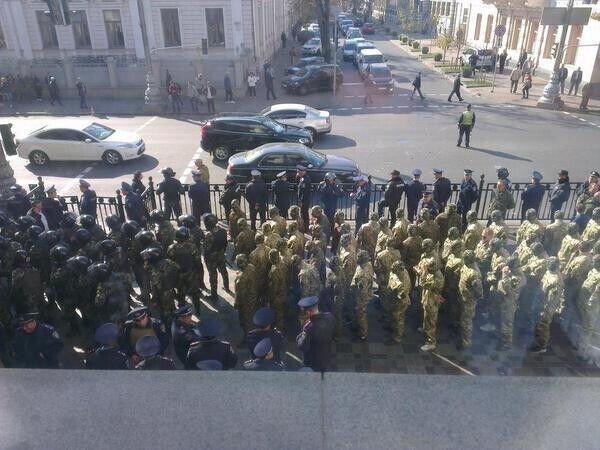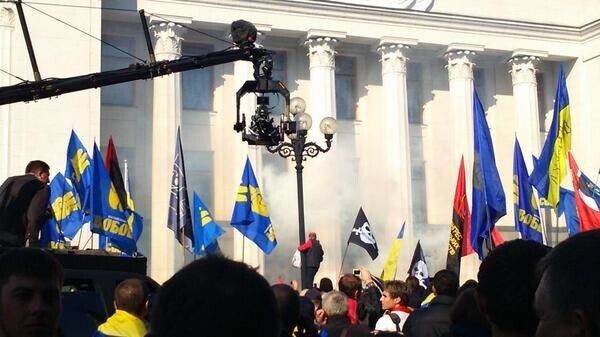 14 октября после отказа народных депутатов рассмотреть вопрос о придании воинам УПА статуса воюющей стороны во Второй мировой войне группа агрессивно настроенных националистов начала попытки атак на служащих Нацгвардии, охранявших Раду, с использованием петард, дымовых шашек, палок, цепей, а также оружия, из которого велась стрельба по окнам парламента.