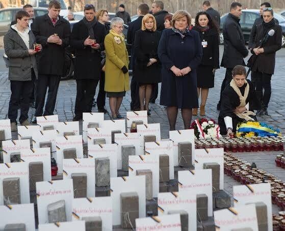 Жены лидеров Украины Польши вместе с участниками встречи прошли по улице Институтской, где были расстреляны Герои Небесной сотни, и почтили память погибших возле памятного Креста.