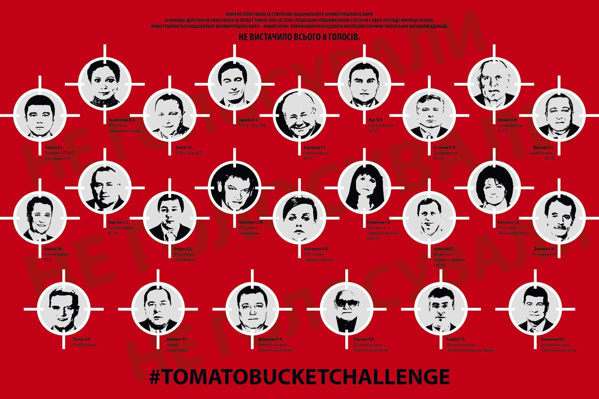 #TomatoBucketChallenge. Доску позора с депутатами, не голосовавшими за антикоррупционное бюро, закидали помидорами. Видео