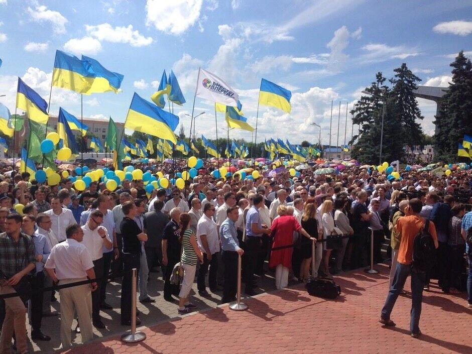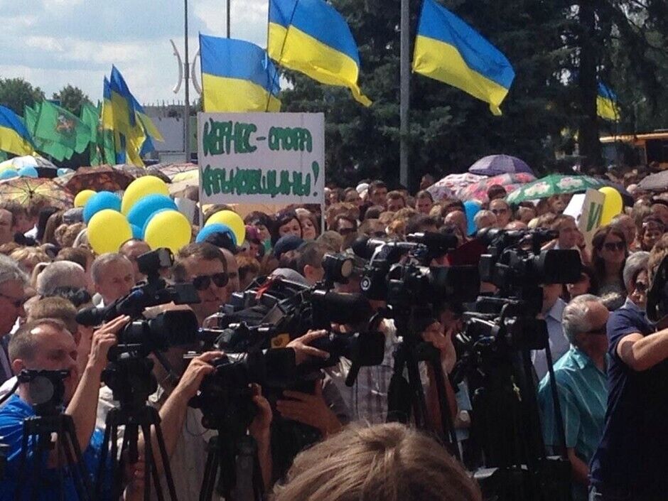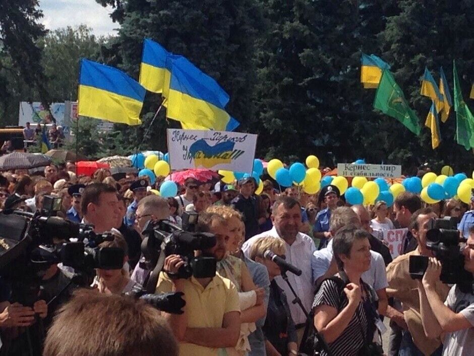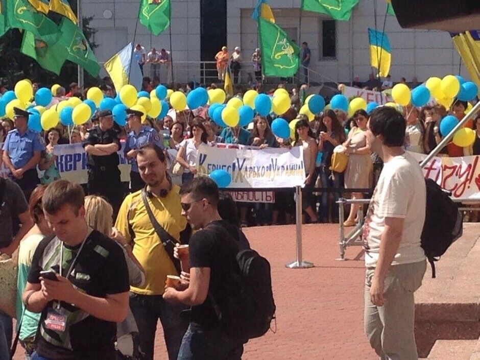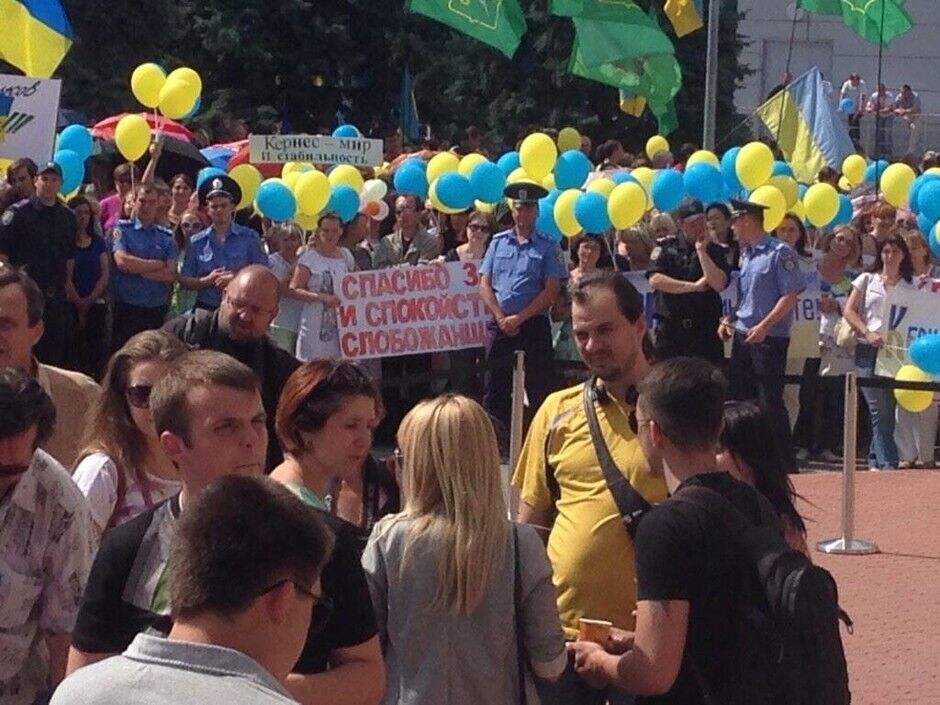 Несколько тысяч харьковчан ожидают в аэропорту мэра Геннадия Кернеса, который сегодня должен вернуться в город после лечения в Израиле. Многие держат желто-голубые флаги и плакаты с надписью "Кернес – опора Харьковщины", "Кернес, Харьков, Украина", "Кернес – мир и стабильность". По данным местных журналистов, на митинге много работников бюджетной сферы, которым "настоятельно рекомендовали" прийти встречать мэра.