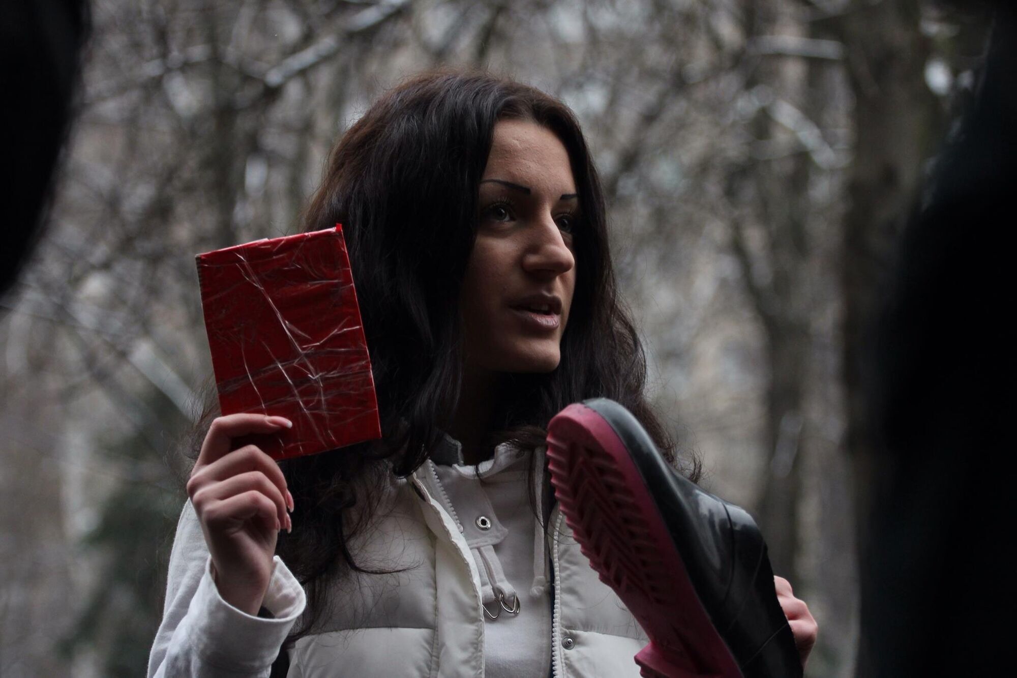 Как позже выяснилось, бросала ботинок активистка КУПРа Татьяна Лиходеева. Сам регионал развернулся в сторону девушки и сказал: "Вот и вся ваша культура".