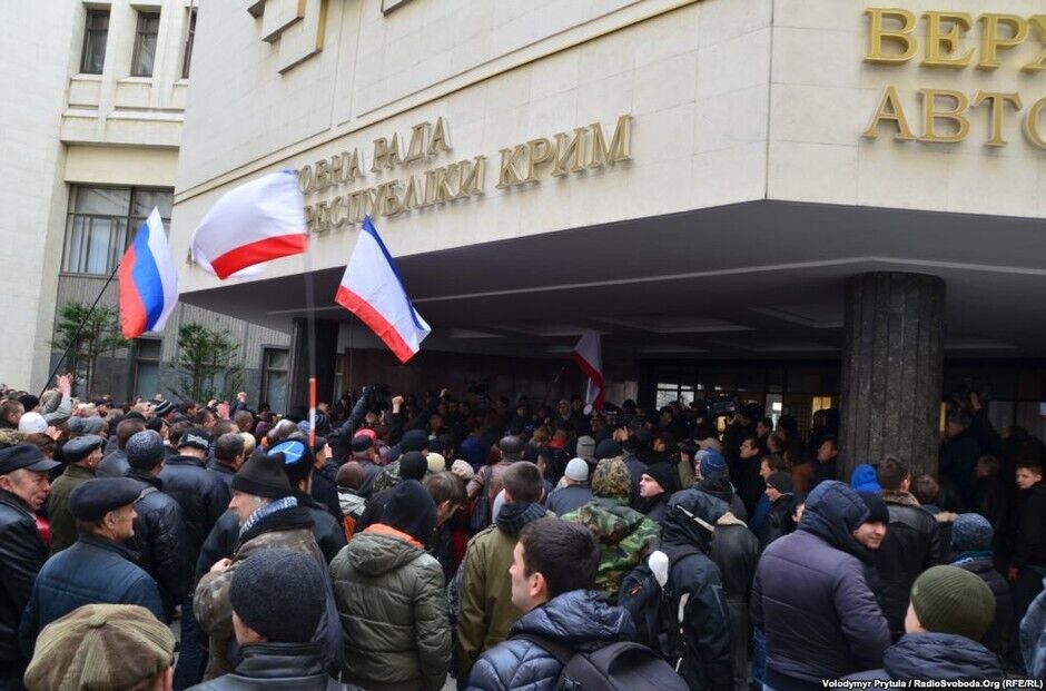 Сегодня, 25 февраля, несколько сотен активистов пророссийских организаций заблокировали здание Верховной Рады Крыма, сообщает "Радіо Свобода". Они требовали, чтобы к ним вышел спикер парламента Владимир Константинов и пообещал проведение внеочередной сессии, провозгласил проведение референдума о независимости и обратился к российскому руководству за помощью. Акцию протеста инициировало до сих пор неизвестное движение "Крымский фронт". К митингу также присоединились казачьи формирования, группировки "Народно-освободительное движение", организация "Таврический союз" и некоторые другие пророссийские объединения.