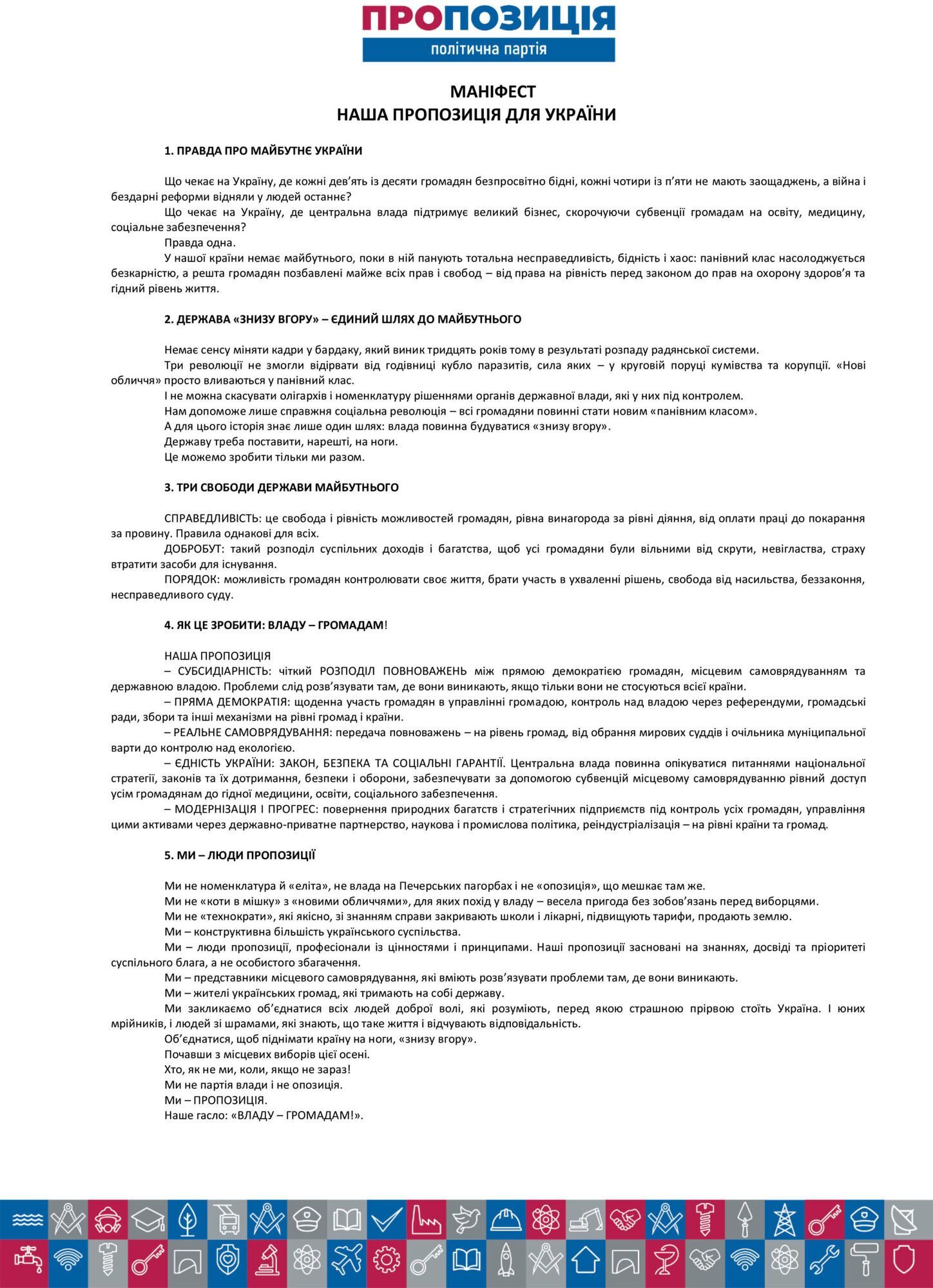 В партии "Пропозиція" заявили, что выдвинут на местные выборы кандидатов в 97 городах и 109 общинах