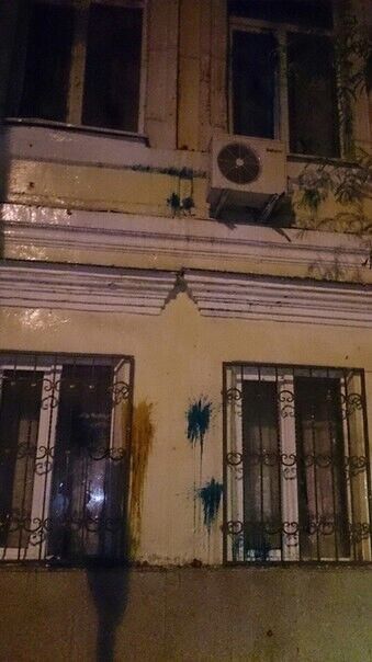 Здание генконсульства Украины забросали яйцами и зеленкой.