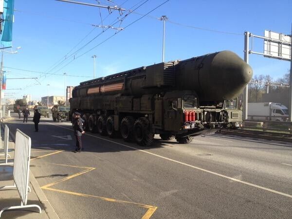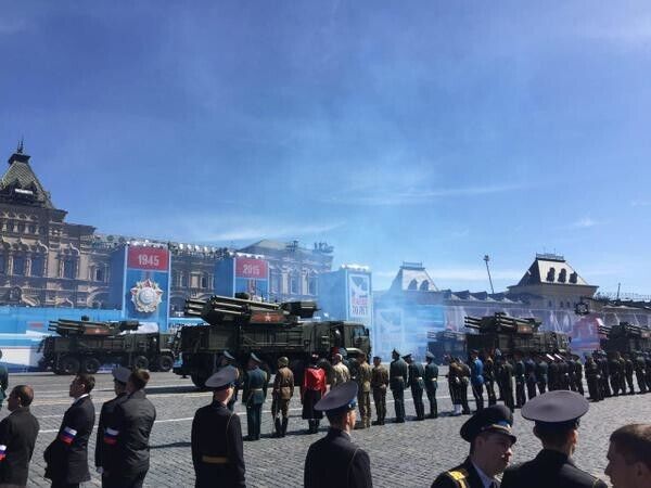 Сегодня в Москве прошла репетиция парада Победы. Для участия в параде были задействовані 200 единиц боевой техники и 143 самолета и вертолета. В парадном строю прошли свыше 16 тысяч военнослужащих всех родов войск. Над Красной площадью пролетели истребители Су-35, учебно-боевые самолеты Як-130, стратегические бомбардировщики Ту-22М3, Ту-95МС и Ту-160, а также вертолеты Ми-28Н и Ми-35. По брусчатке главной площади России прошли новейшие танки Т-14 "Армата", САУ “Коалиция-СВ”, противотанковые ракетные комплексы “Корнет-Д”, боевые машины пехоты “Курганец-25. Особое внимание прессы и наблюдателей было приковано к танку Т-14 "Армата", который многие годы был самым секретным военным проектом России. Во время репетиции один из танков поломался и его пришлось буксировать при помощи тягача.