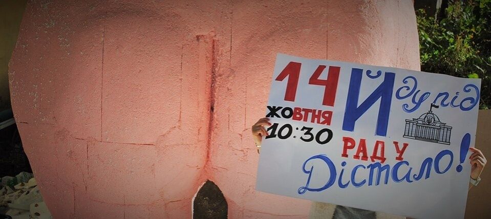 Во вторник, 14 октября, общественные активисты планируют установить у здания парламента трехметровую арт-инсталляцию под названием "Корупційна Дупа" ("Коррупционная задница").