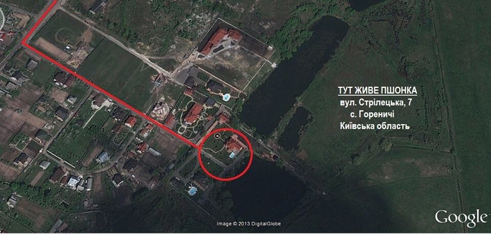 "Село Гореничи, улица Стрелецкая, 7. Этот адрес должен знать каждый, ведь тут обитает генеральный прокурор Виктор Пшонка", – добавила она в своем профиле в Facebook.