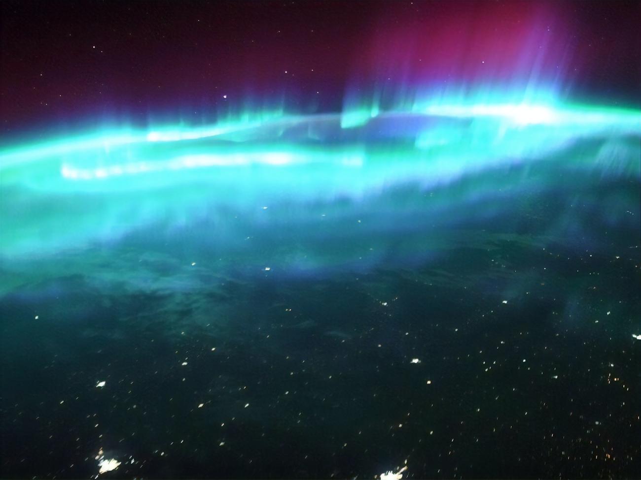 По его словам, это было самое сильное полярное сияние за время пребывания миссии на борту МКС. Оно происходило над Северной Америкой и Канадой, а пики вспышек возносились выше орбиты станции.