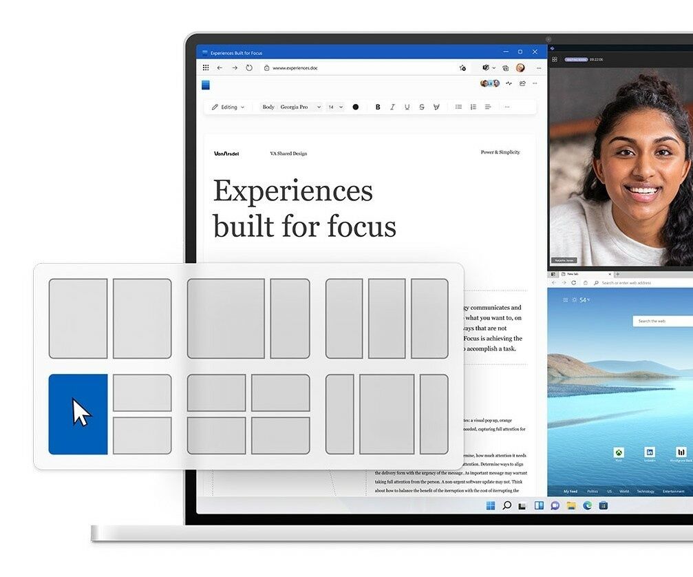 В новую версию своей ОС Microsoft ввела новую организацию пространства под названием Snap Layouts. Она позволяет выбрать, как именно открытые окна пользователь хочет расположить на экране.