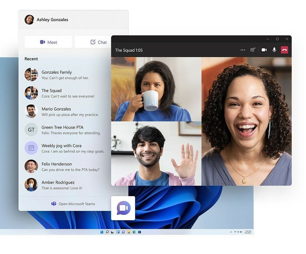 В базовую сборку Windows 11 войдет приложение для видеозвонков и обмена сообщениями Microsoft Teams, которое позволит пользователям компьютеров и других гаджетов начать общение в несколько нажатий.