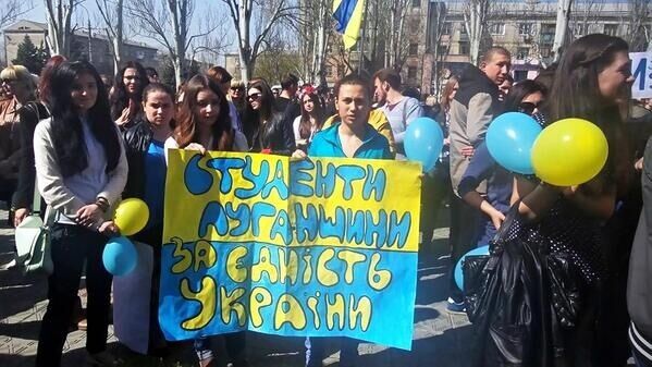10.10 Тем временем в Луганске митингуют за единую Украину.
