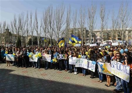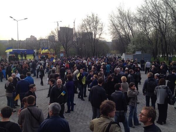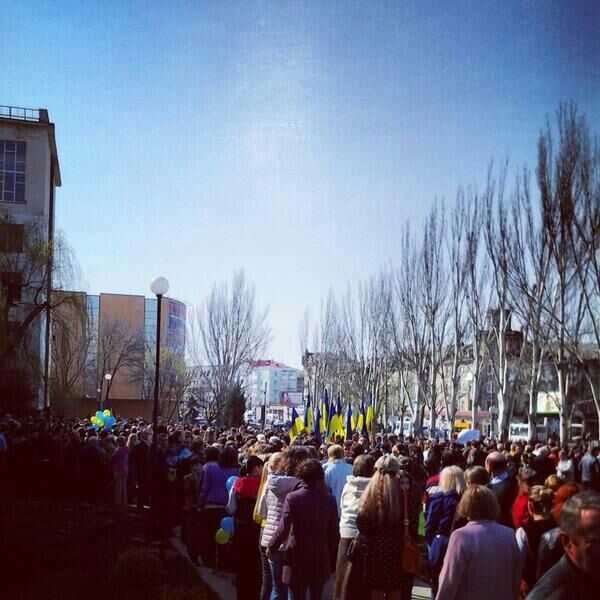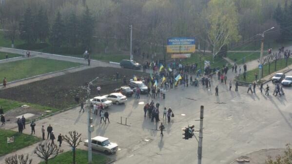 19.40 Проукраинскиймитинг в Краматорске окончился мирно. Попытка нападения не удалась.