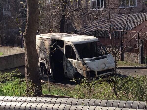 10.06 Сгоревший микроавтобус возле воинской части в Мариуполе после ночного штурма. Принадлежал ли он нападавшим или просто был припаркован в неудачном месте, неизвестно.